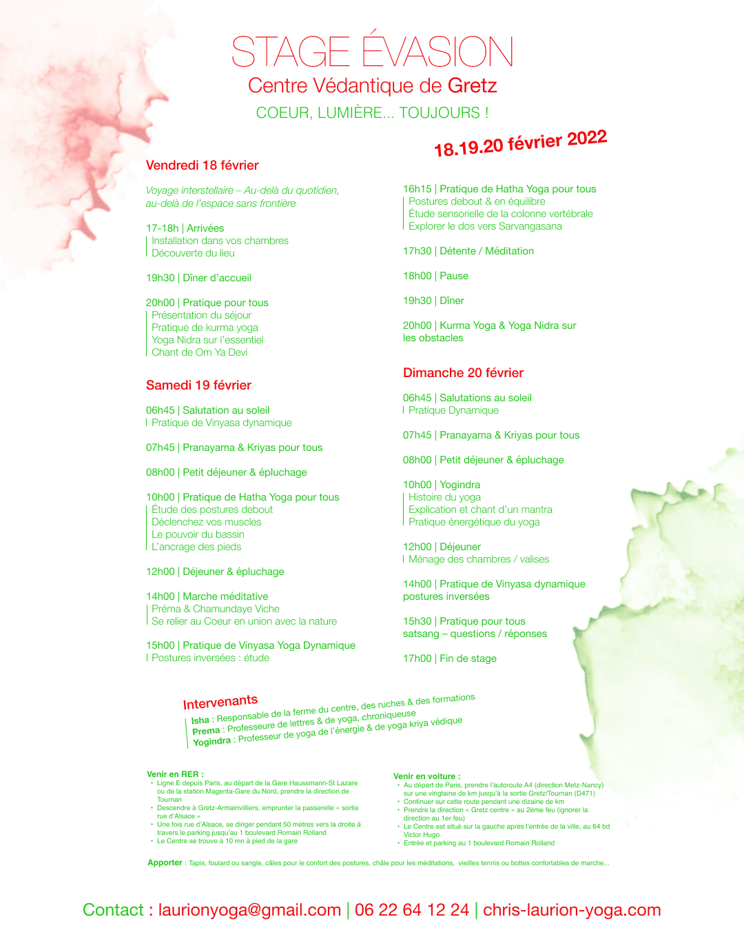 Christine Laurion 13 février 2022 Yogi Bird Newsletter No Comments Stage ÉVASION Programme du 18 au 20 février 🧘🏽♂️