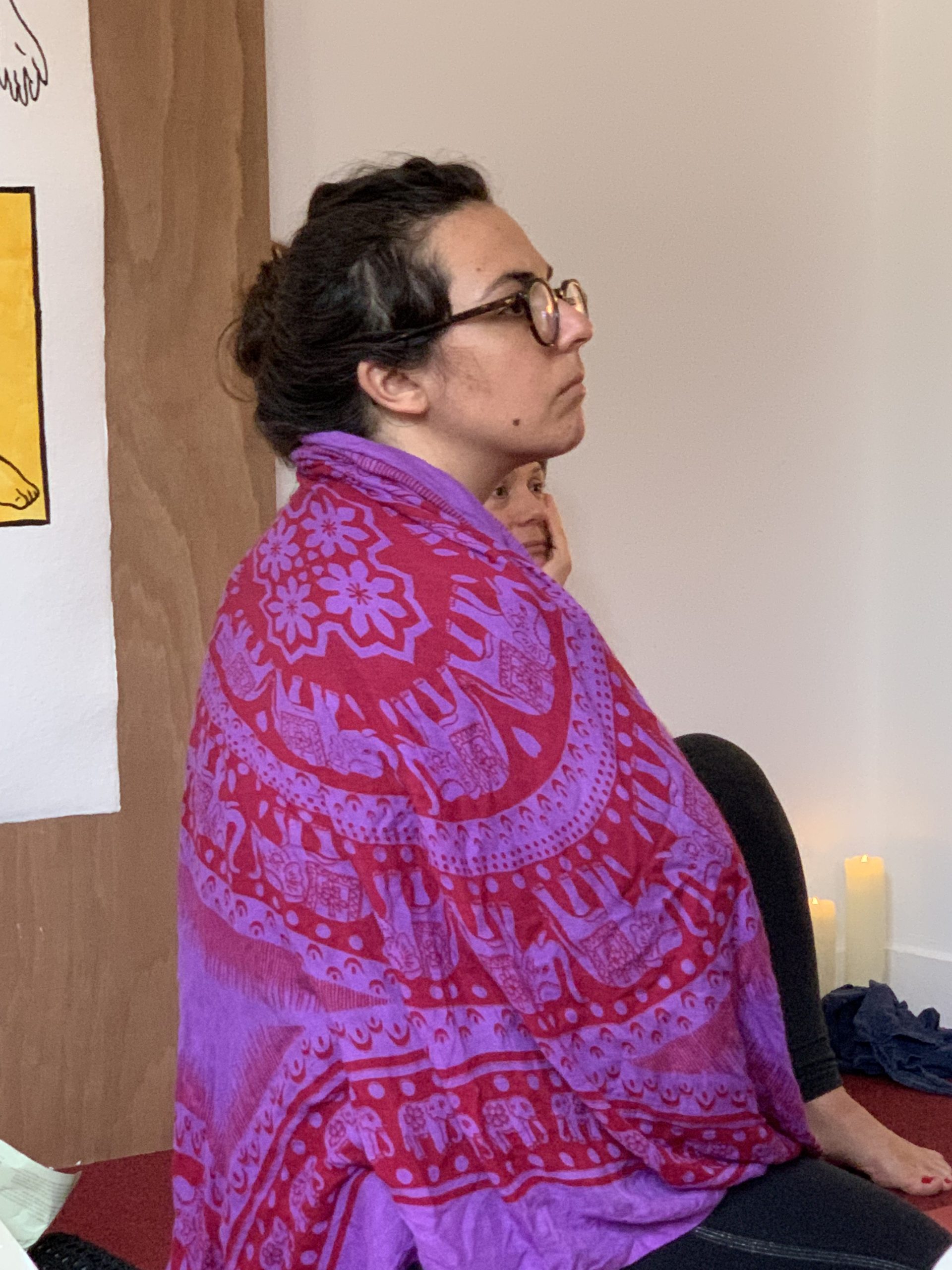 Nous avons vu nos merveilleuses anatomies sur le tapis de Verdi à la Danse du Marais dimanche – où, comme les amas de cocolytes, nous étions assemblés les uns à côtés des autres dans une concentration parfaite, où les sens se sont intériorisés, avec l’écho de Prema et de Swami Veetamohananda dans la méditation de purification des sens qui nous a amenée très, très loin pour nous éveiller et élever notre conscience.